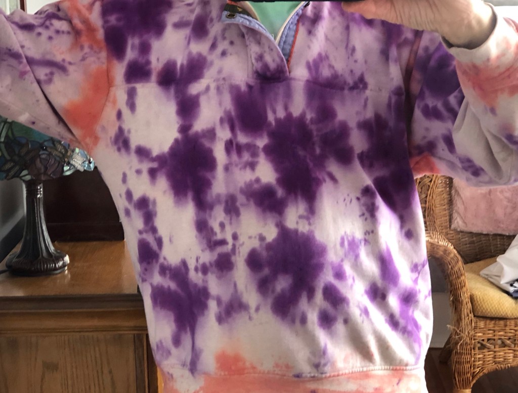 Upside of Corona: So apparently some people are starting to share stories about some okay things that have become unexpected consequences of this lovely virus, like family dinners and new family rituals. So, in that vein, last weekend the coconuts and Evan were down with their combined pack of untamed yellow dogs, who were running around the yard, excitedly leaping through brambles and thorn bushes as if they had been raised up from their wheelchairs by a revivalist healer. Sadly, the coconuts and Evan weren’t quite prepared for the high energy shenanigans and had to put the dogs back in the house. In the meantime, little coconut Bridget had the idea of a family tie dye festival in the side yard. After a few less than fantastic practice rounds with old tee shirts, Bridget and Kelsey made some nice hoodies. I had an old, stained Orvis sweatshirt that I decided could use an upgrade, but I think it ended up looking more like Bonnie and Clyde’s death shroud than anything resembling high fashion.