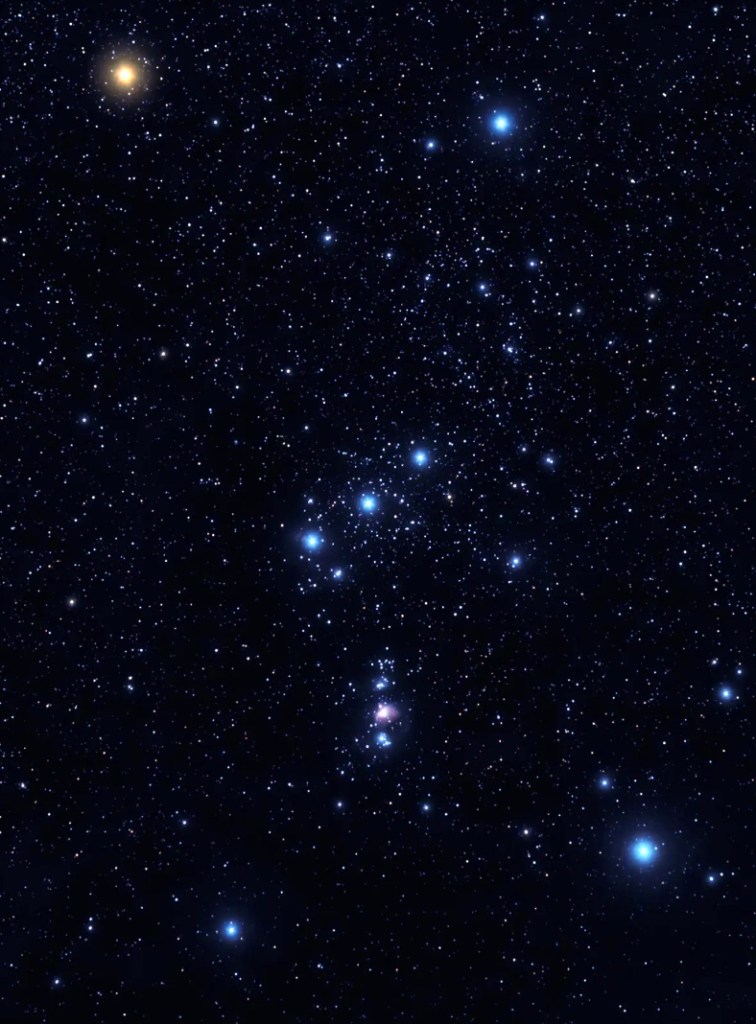 Why stop there? Clockwise from Sirius circling outside Orion: Procyon. Pollux and Castor (the anchor stars of Gemini). Up to Cappella. Follow Orion’s arrow through Aldebaran into the Pleiades cluster. They become familiar. Like a rock formation or tiny island seen from your perch in Big Sur.